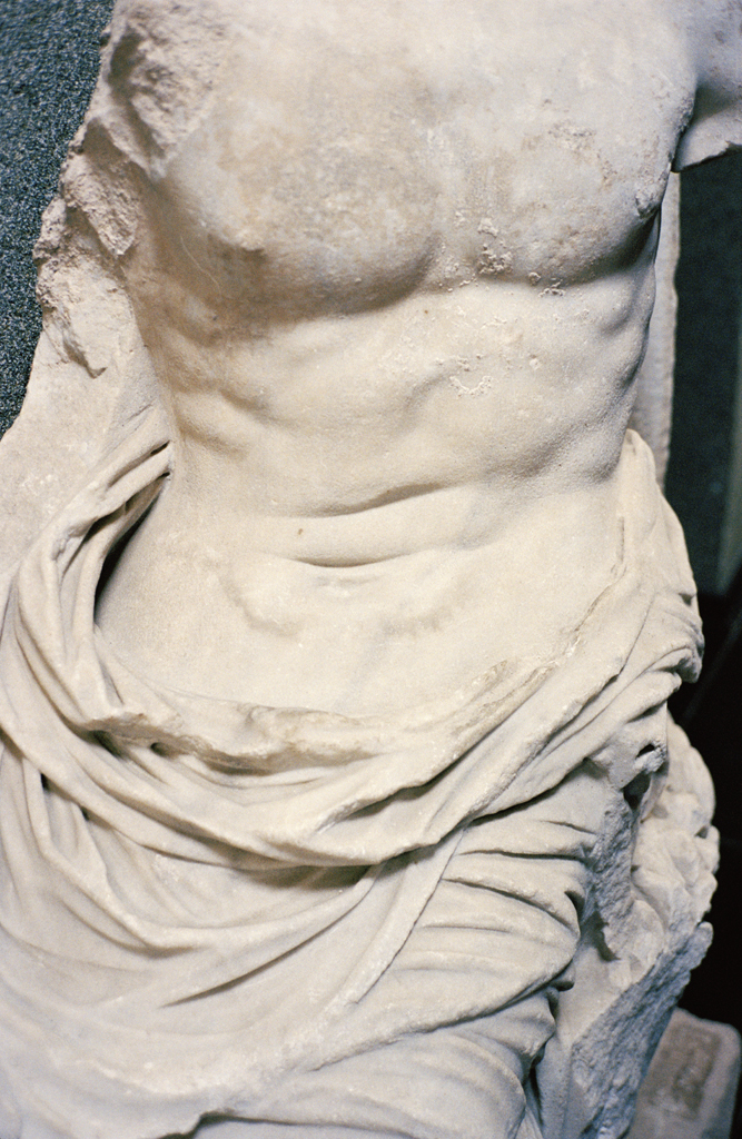 Paper towels, aluminum, marble, glass, stone, silk ribbon, lavender, ceramic, polyester ribbon, umbrella, archival inkjet prints (110 x 165): Hull, Torso, Mirror.